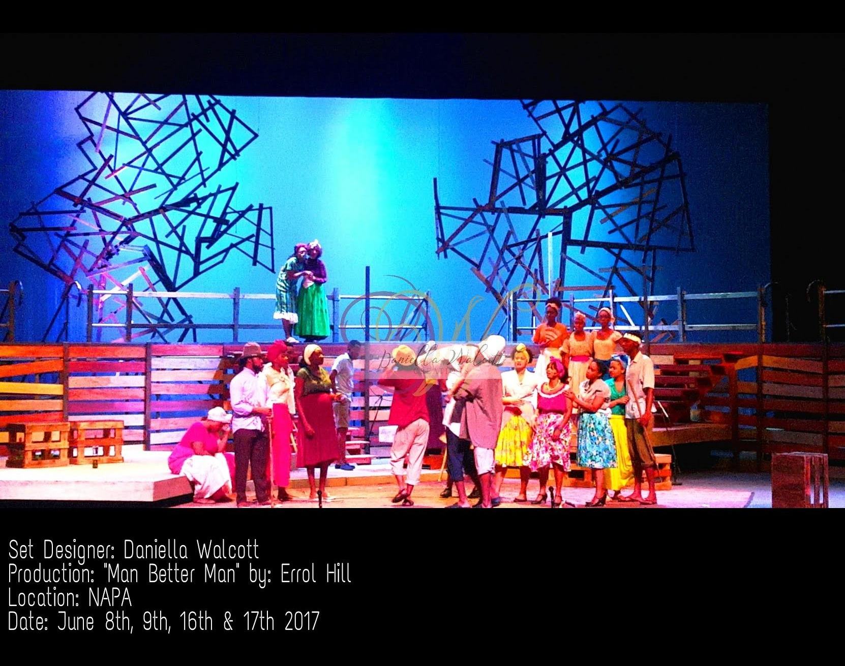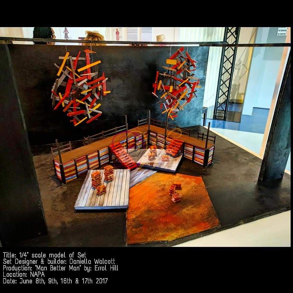 One of the biggest productions Daniella held the role of Set Designer was for the“Man Better Man” Production held at The National Academy for the Performing Arts in Port of Spain Trinidad and Tobago from June 8th to 17th 2017. The Ministry of CultureThis was for her final major project with The University of Trinidad and Tobago.